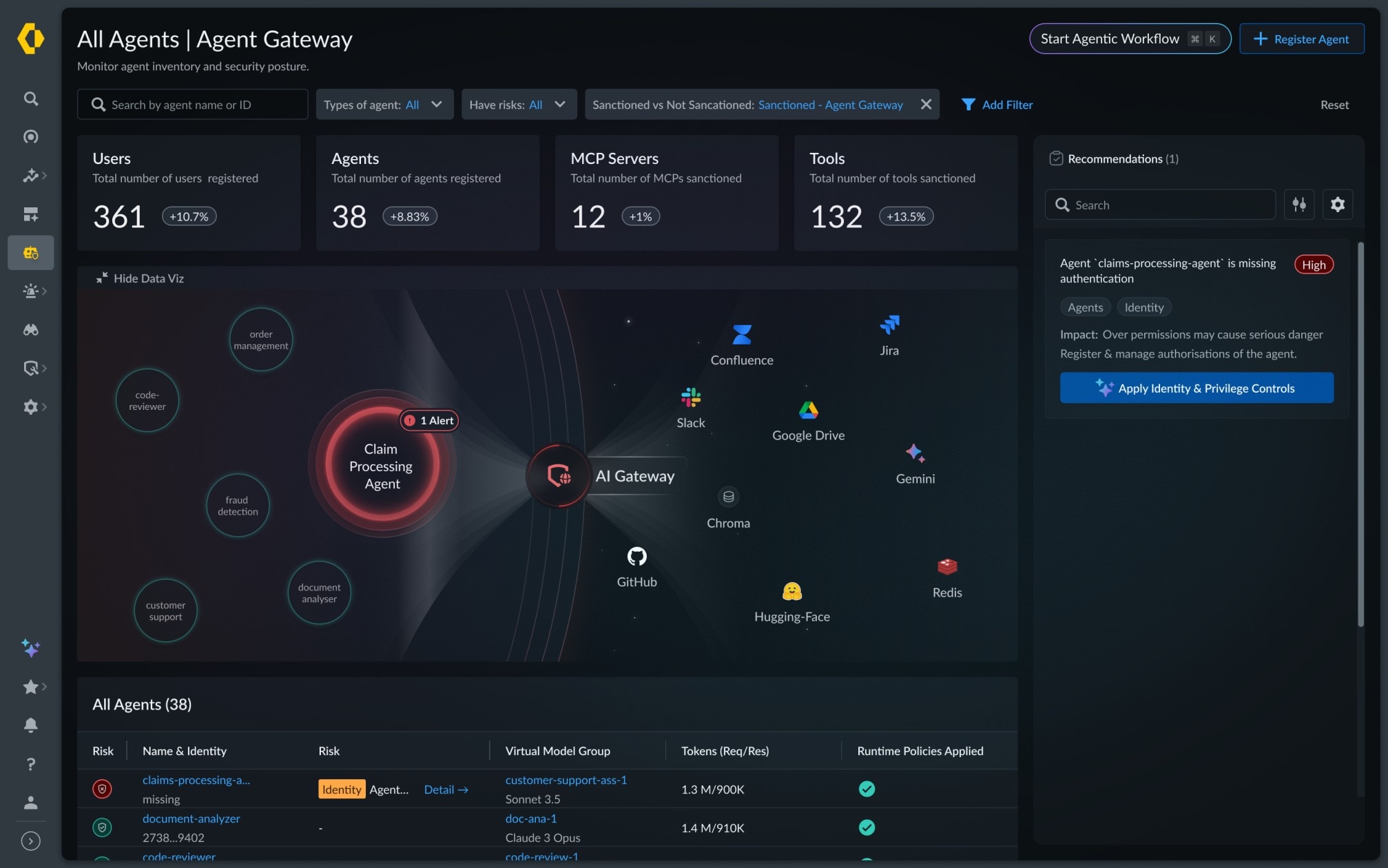 Scopri gli agenti AI su piattaforme SaaS, servizi cloud, strumenti low-code e ambienti personalizzati. Ottieni una visibilità centralizzata su ciò che gli agenti stanno facendo, su ciò a cui possono accedere e su come prendono le decisioni, eliminando i punti ciechi degli agenti ombra o di terze parti.